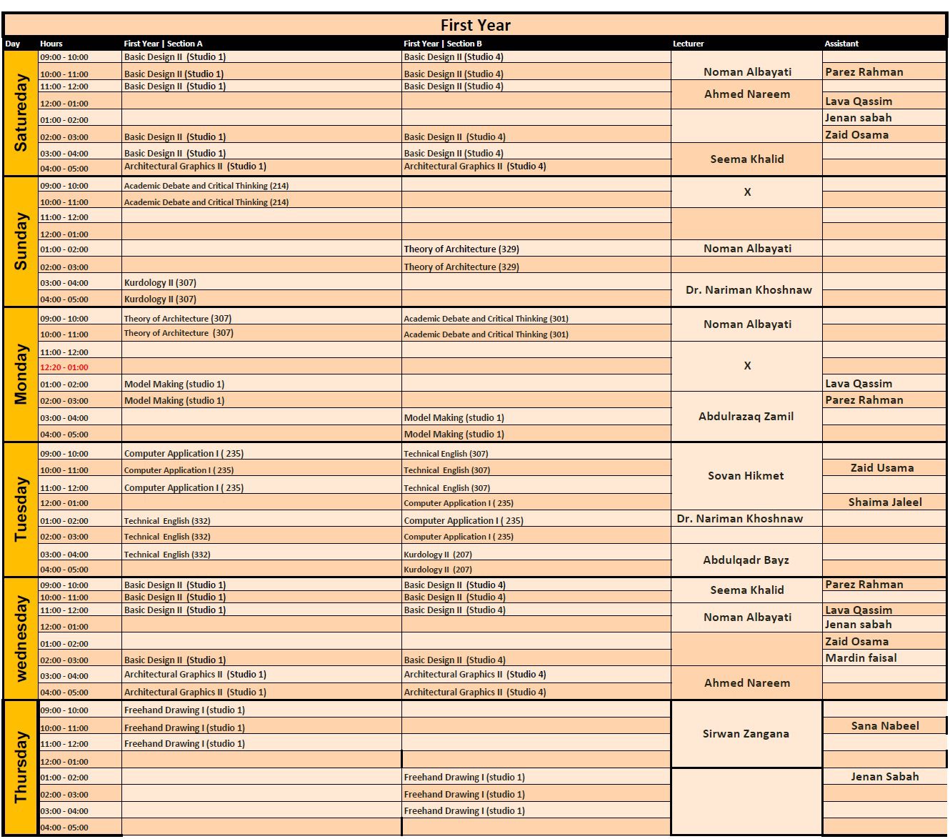 schedule | Architecture Department